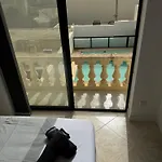 Poolen er synlig fra nogle af værelser. De indeholder separat toilet, et badekar og en bruser på badeværelserne.